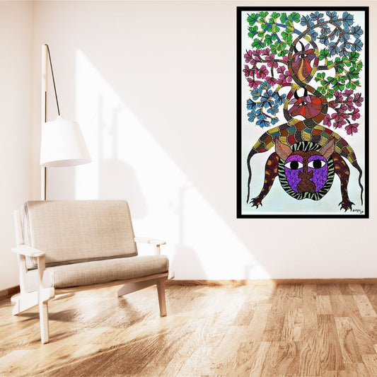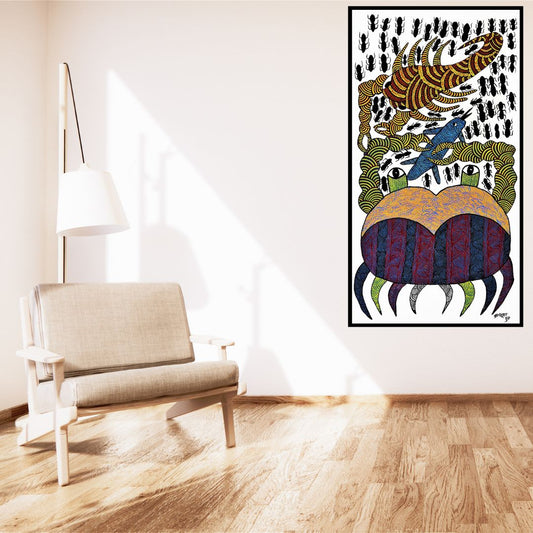 Original Handmade Tribal Gond Painting Of Animal Food Chain
